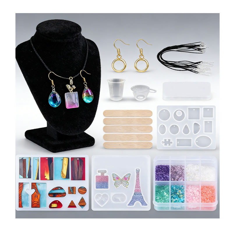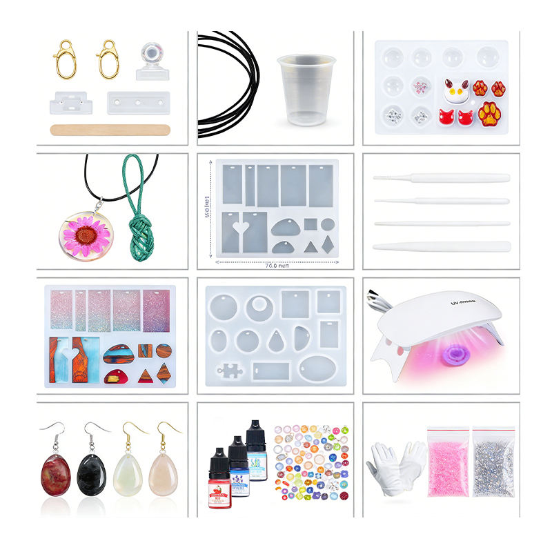 Kit de fabrication de bijoux artisanaux en résine avec résine transparente à durcissement rapide, moule en silicone et lampe UV pour fournitures d'art DIY