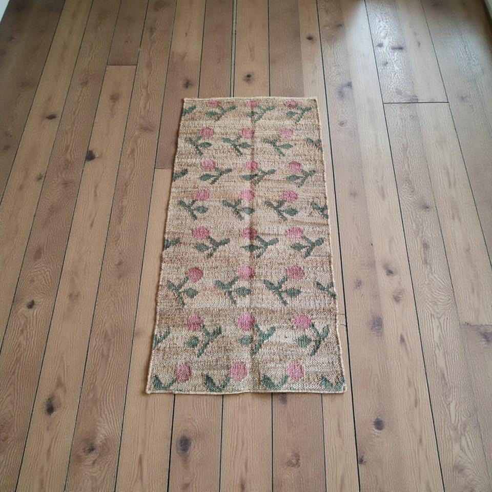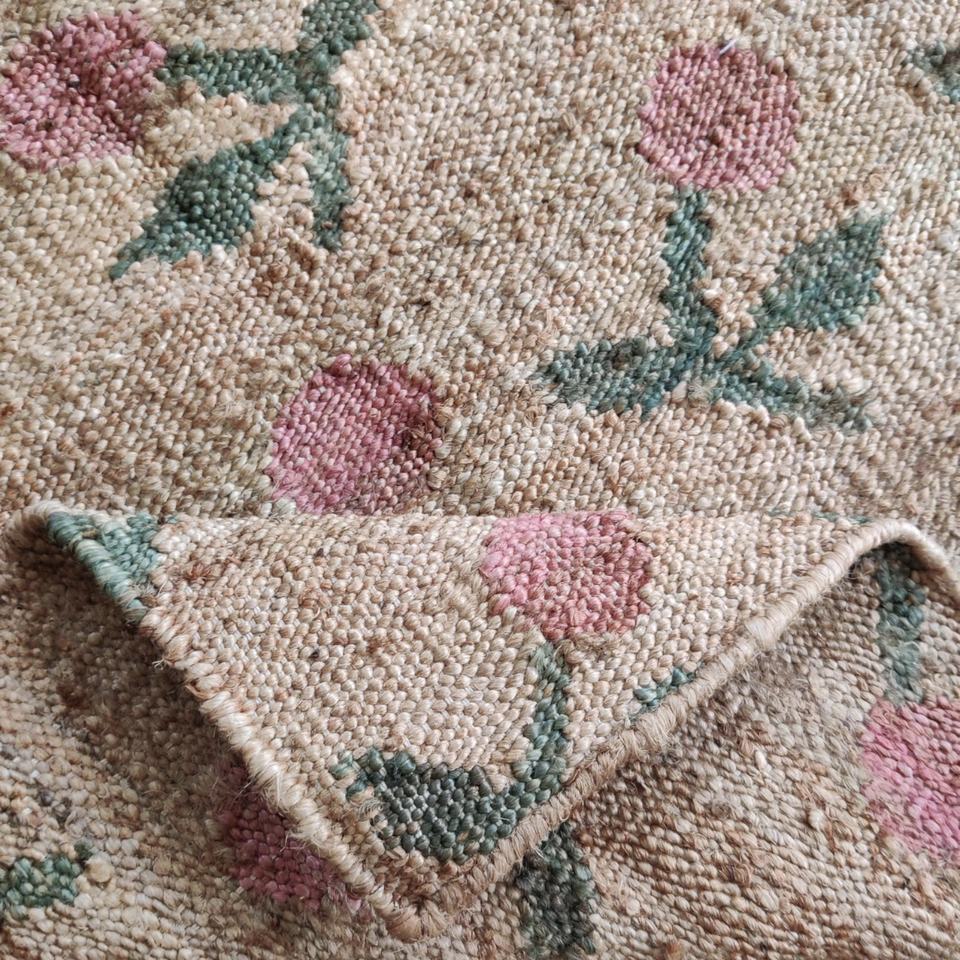 Tapis et moquette en jute faits à la main avec un motif géométrique traditionnel | Décoration d'intérieur en fibres naturelles