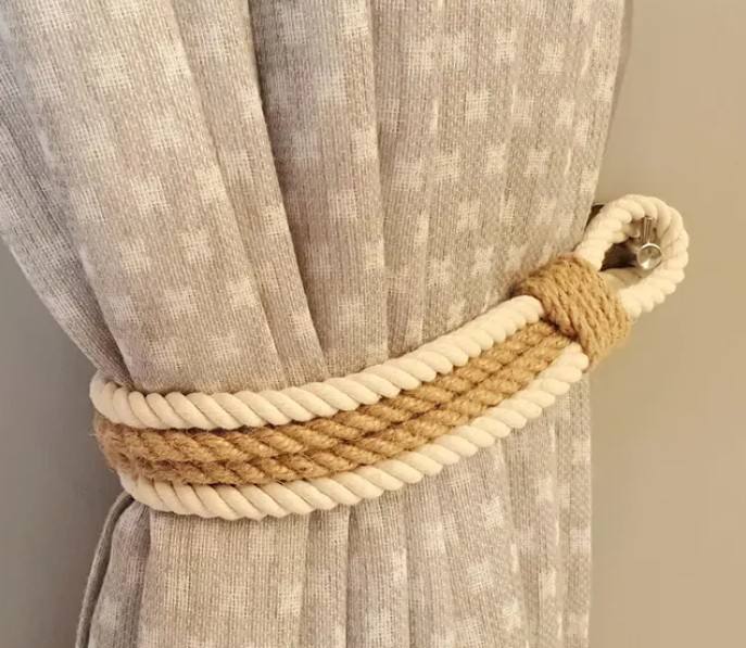 Attache de rideau en corde de jute et de coton fait main
