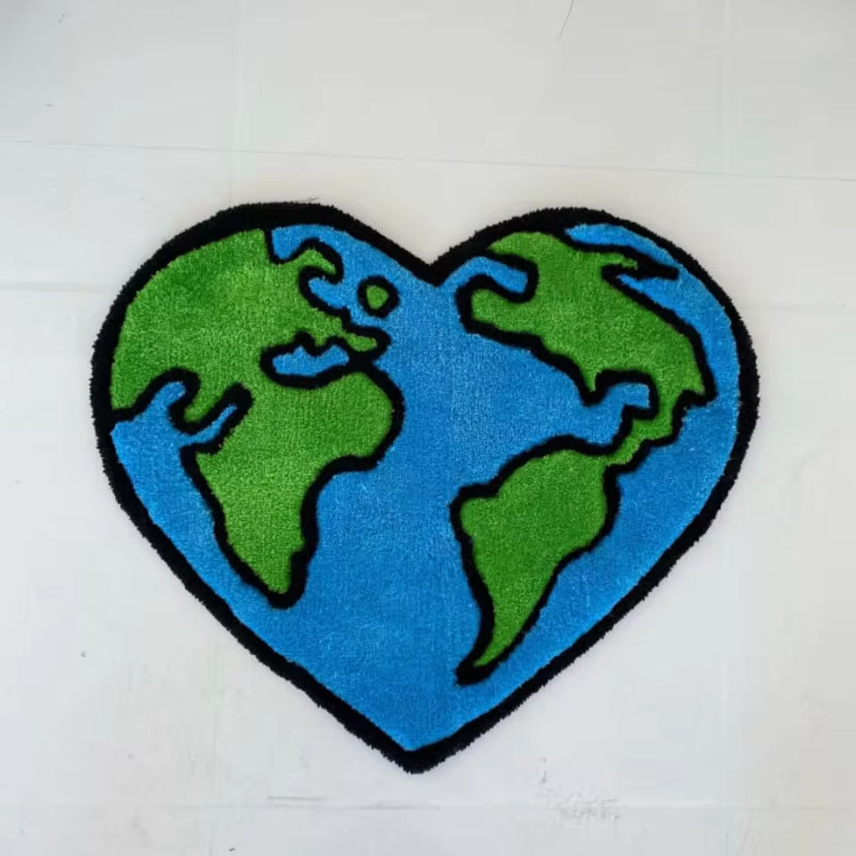 Tapis à nœuds fait à la main Cadeau personnel Laine touffetée Globe du monde Design avec motif rayé Taille personnalisable
