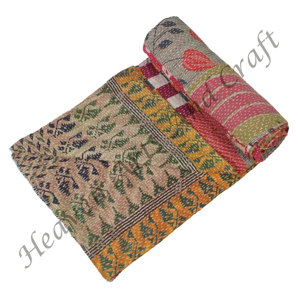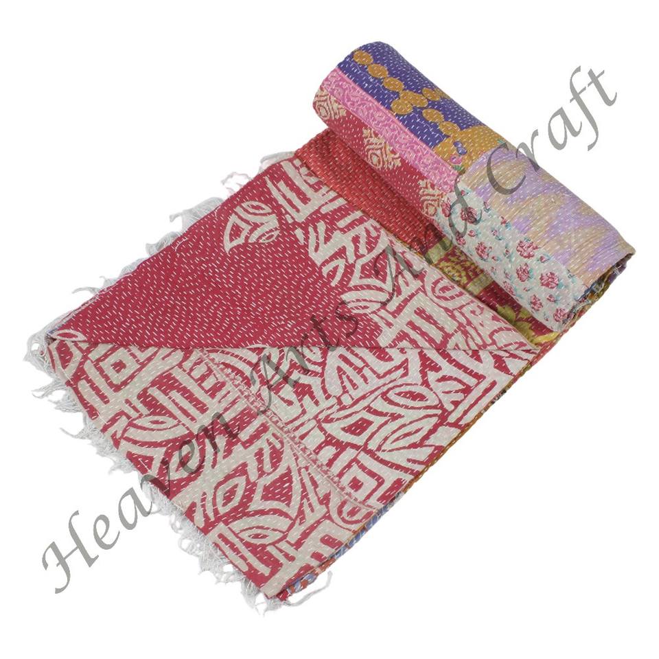 Couverture Kantha faite à la main, couvre-lit Kantha cousu à la main, couverture Kantha indienne réversible, couverture lourde cousue à la main, couverture en vieux sari