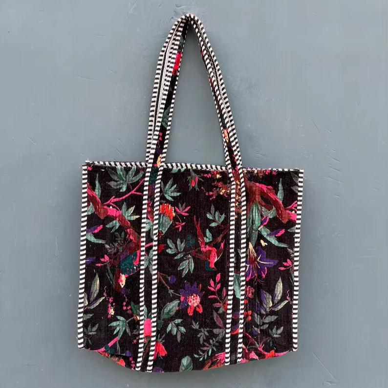Sac fourre-tout en coton matelassé Kantha fait main, personnalisable, grand format, style bohème, pour la plage, les voyages, le shopping, avec fermeture éclair et poche intérieure brodée, été automne