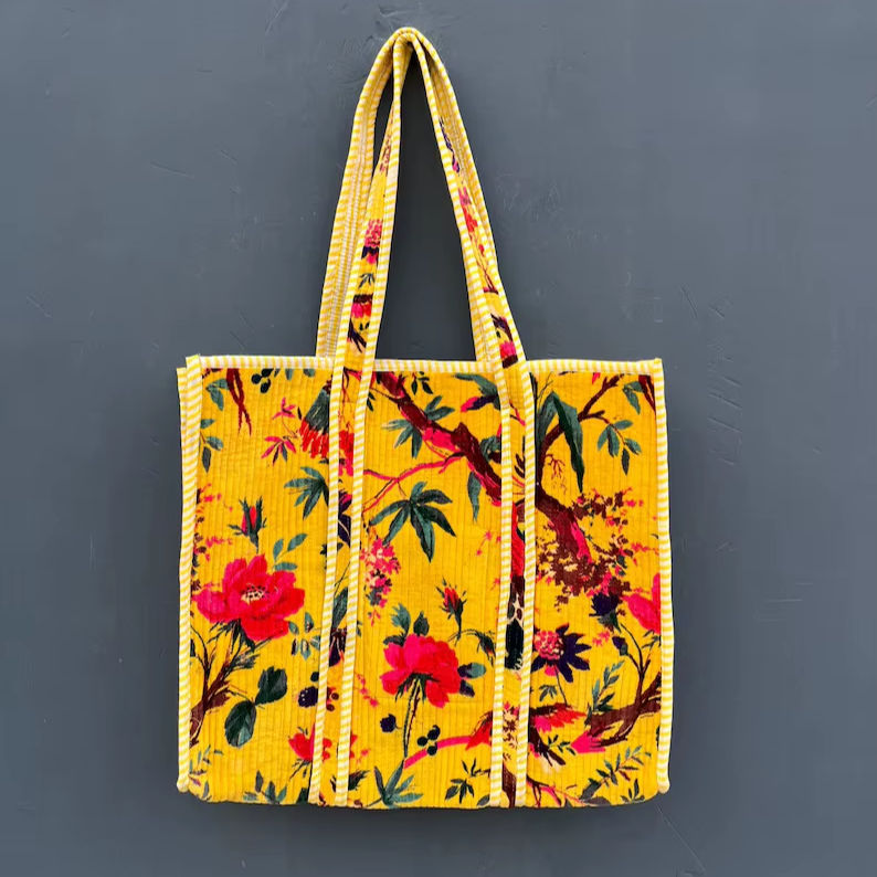Sac fourre-tout en coton matelassé Kantha fait main, personnalisable, grand format, style bohème, pour la plage et les voyages, avec fermeture éclair, brodé, sac de shopping, intérieur portable