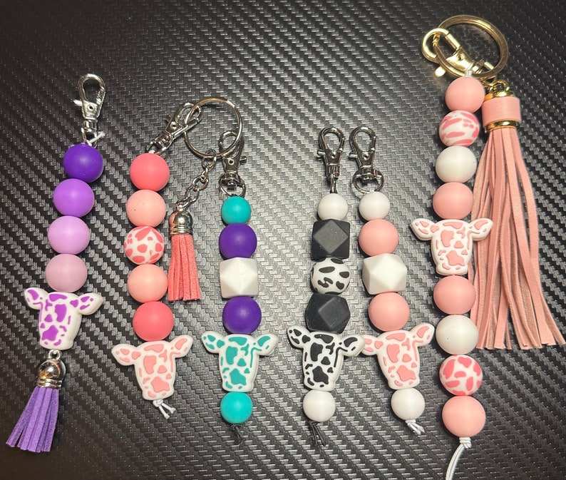 Porte-clés fait main avec perles en bois et anneau en acier inoxydable | Porte-clés coloré en perles de bois et acier inoxydable | VRNQ