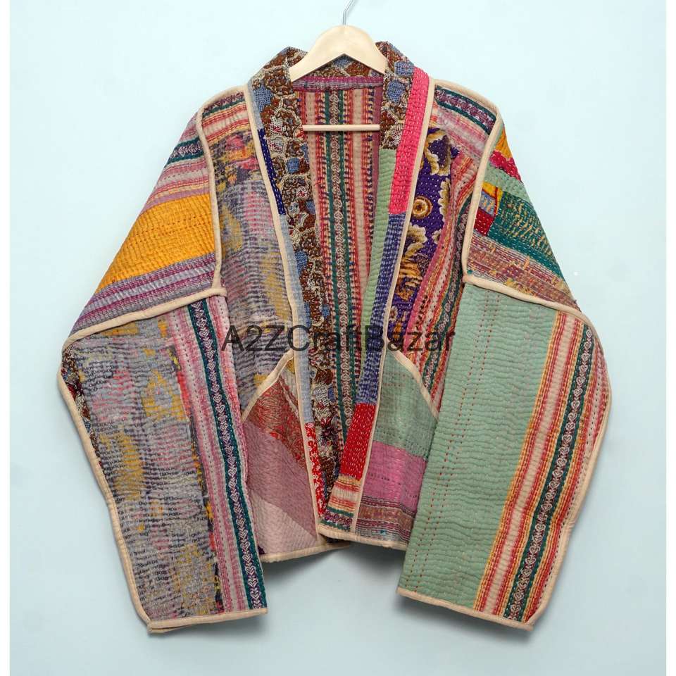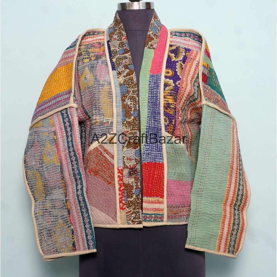 Veste à col roulé boutonnée en coton 100% pour femme, tricotée à la main, réversible, écologique, respirante, séchage rapide, style vintage Kantha
