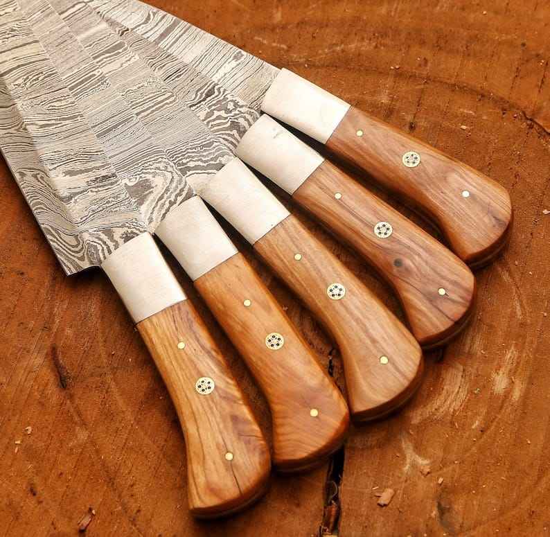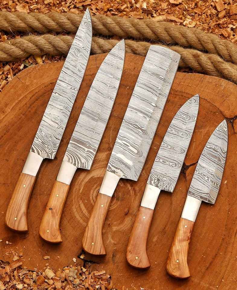 Couteaux faits main avec kit en cuir, ensemble de couteaux de cuisine, couteau de chef, couteau utilitaire, couteau à éplucher les fruits, 5 pièces, utilisation professionnelle OEM OBM, respectueux de l'environnement