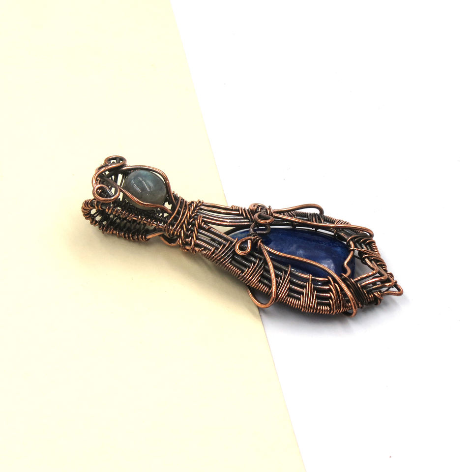 Pendentif en lapis-lazuli bleu enveloppé de fil de fer