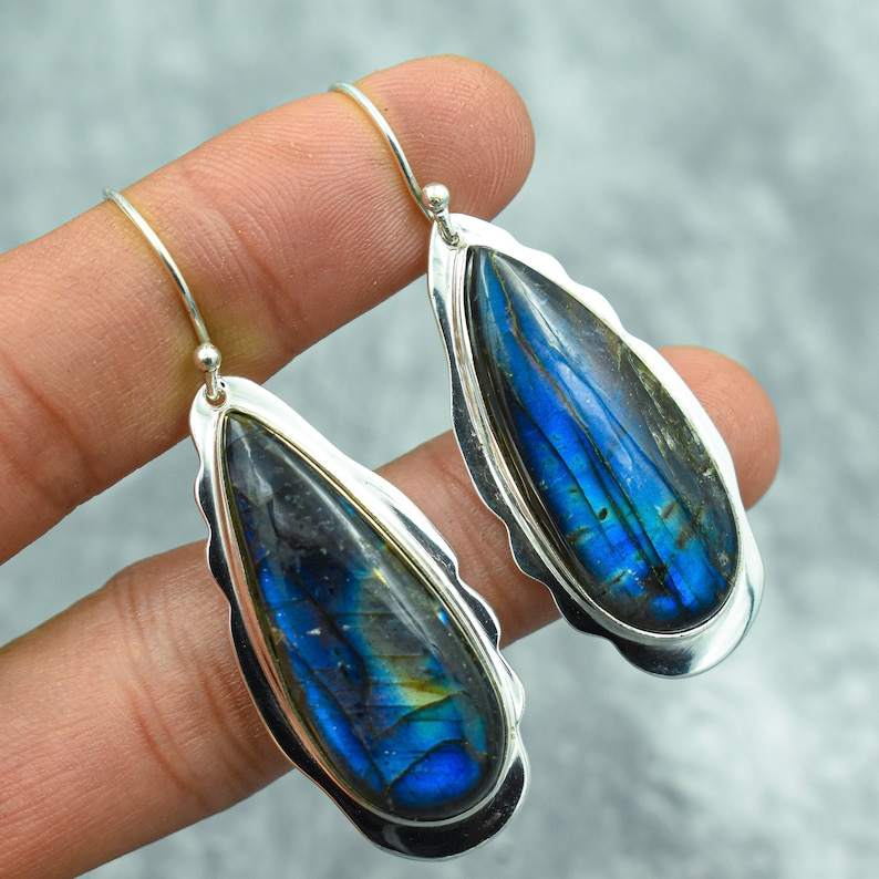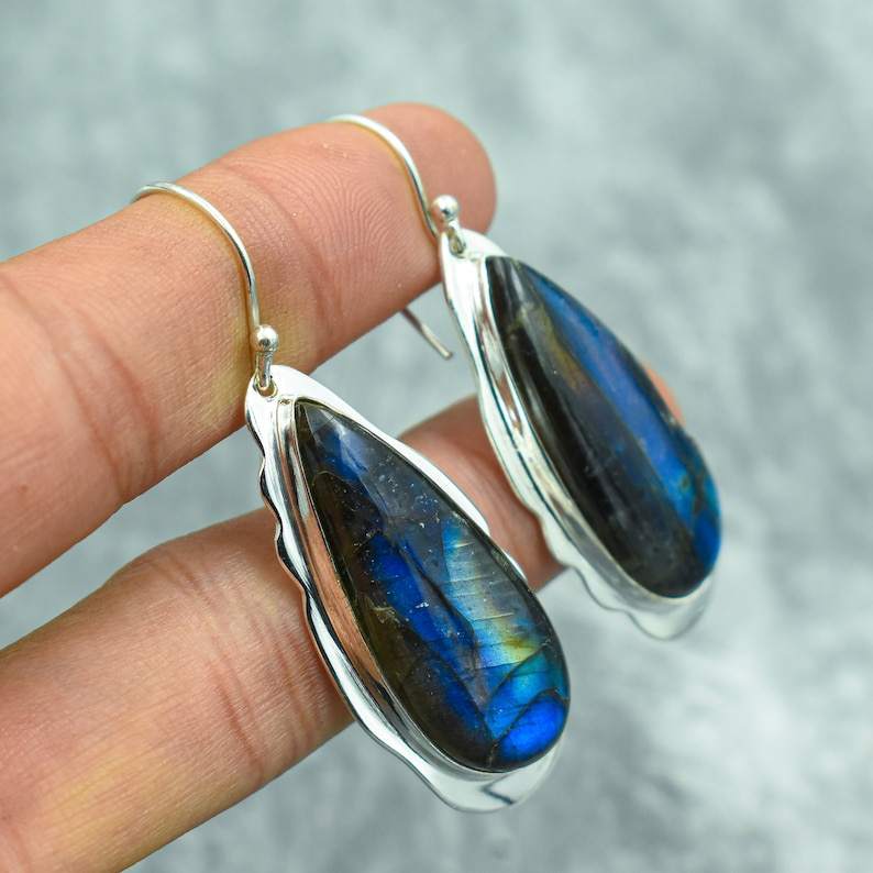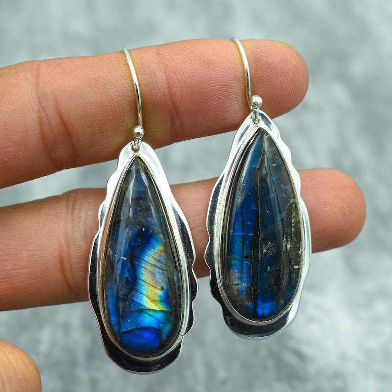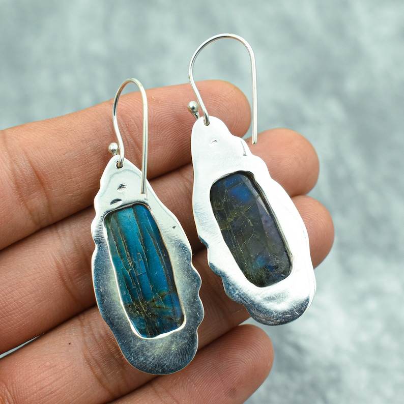Handmade Labradorite Gemstone Earrings - Elegant Sterling Silver Jewelry