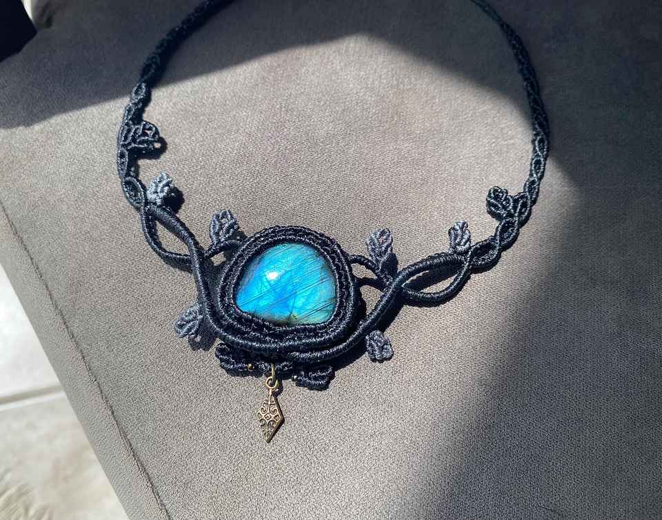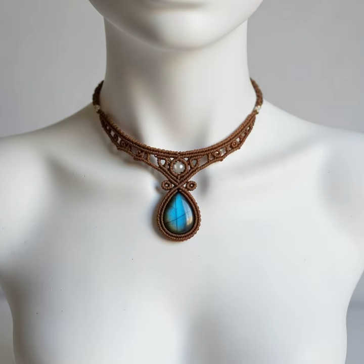 Collier en macramé en alliage de métaux précieux fait main, forme de poire, chaînes en cristal bleu scintillant, bijoux de luxe pour mariage, plaqué rhodium