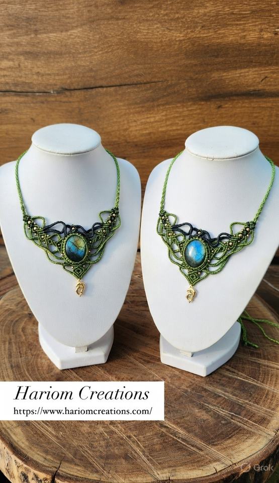 Collier statement en macramé fait main en perles d'eau douce, fil vert et noir, style bohème, cordon réglable, plaqué platine, bijoux pour femmes