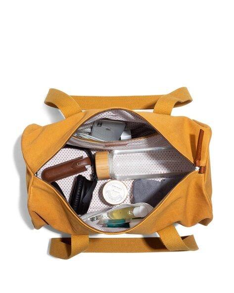 Sac à dos Duffle en toile de coton de grande capacité fait à la main du fabricant Mustard Swing Yellow Zipper DailyObjects Luggage Duffle