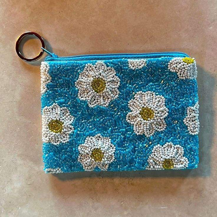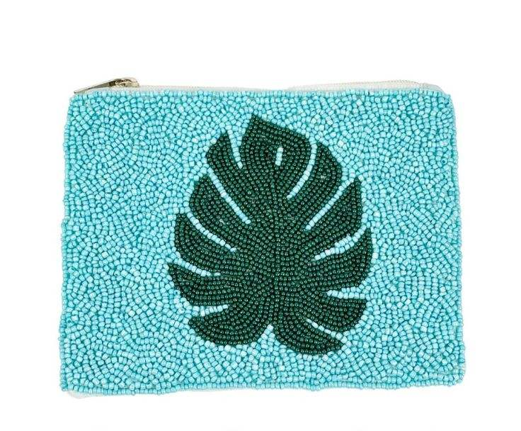 Portefeuille à monnaie grande taille fait main pour femme, pochette brodée de perles de rocaille motif arbre et fleurs, avec fermeture éclair, provenance Inde