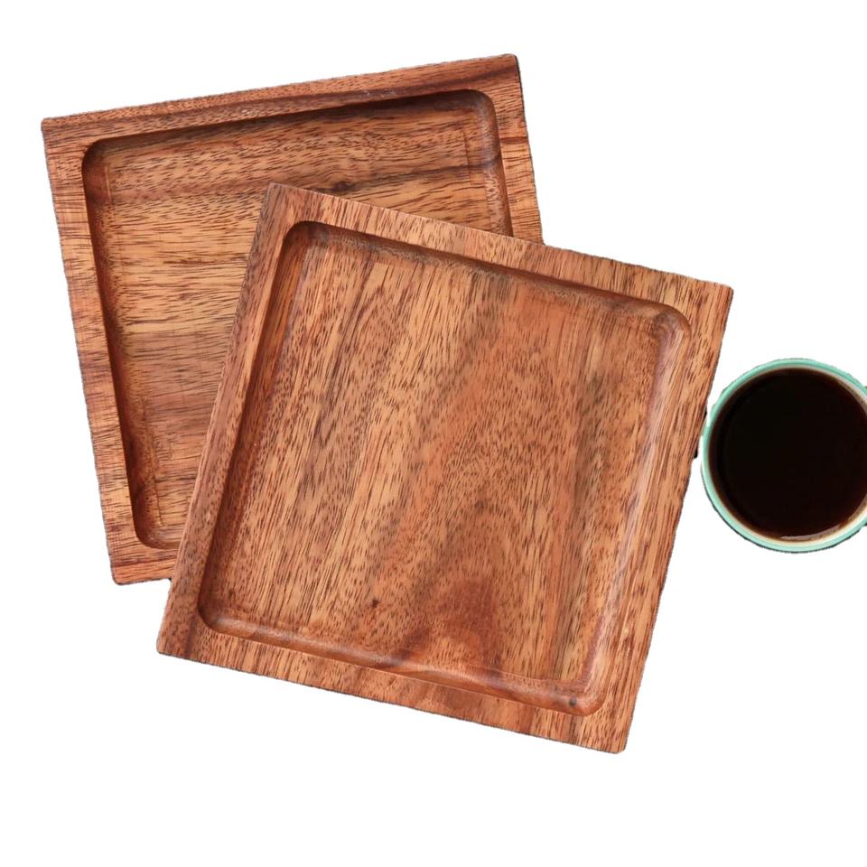 Grand plateau de service carré fait à la main en bois naturel durable pour un usage domestique facile à nettoyer pour les aliments et les boissons quotidiens divertissant les invités