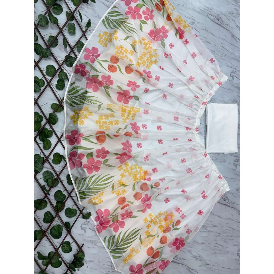 Lehenga A-Line Fait Main Dernière Collection pour Soirées, Magnifique Imprimé Floral sur Tissu Mousseline, Taille Naturelle