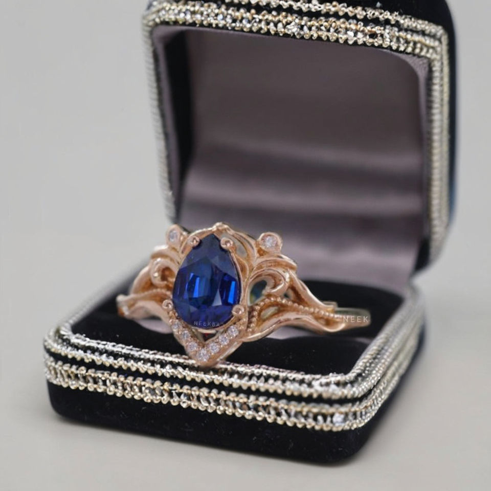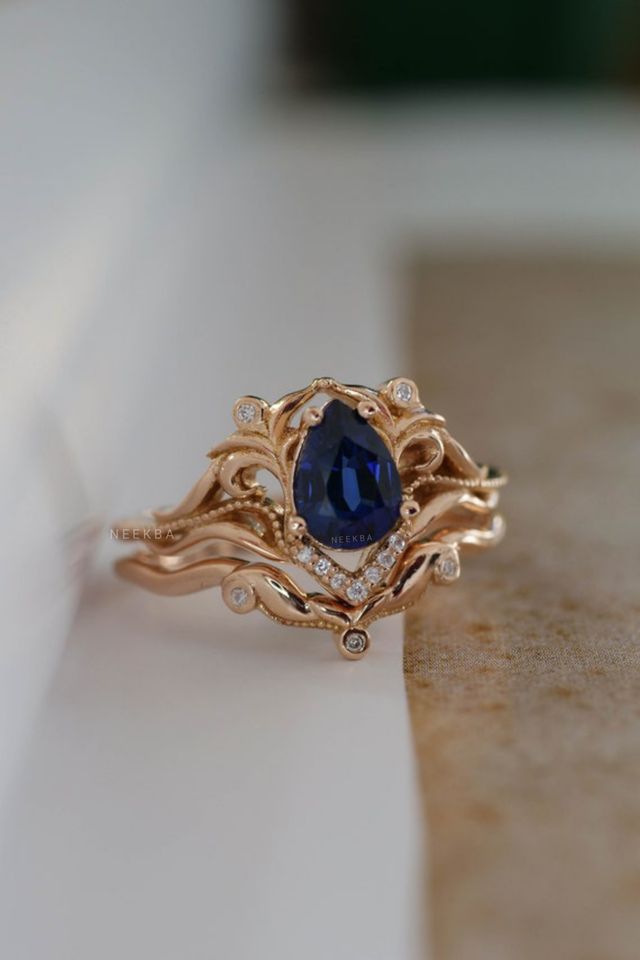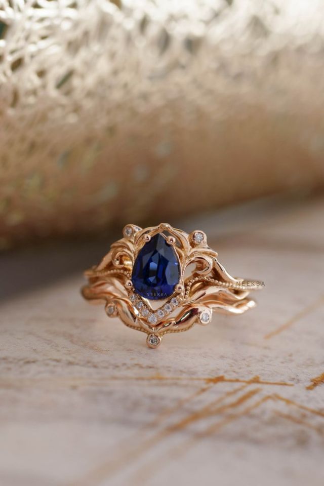 Ensemble de bague de mariage saphir bleu