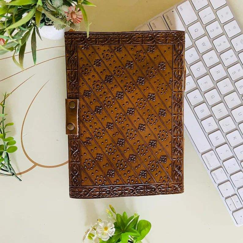 Journal relié en cuir fait à la main exclusif Vintage rétro B5/A7 carnet de croquis de voyage serrure plus proche couverture rigide papier de couleur de l'eau en relief