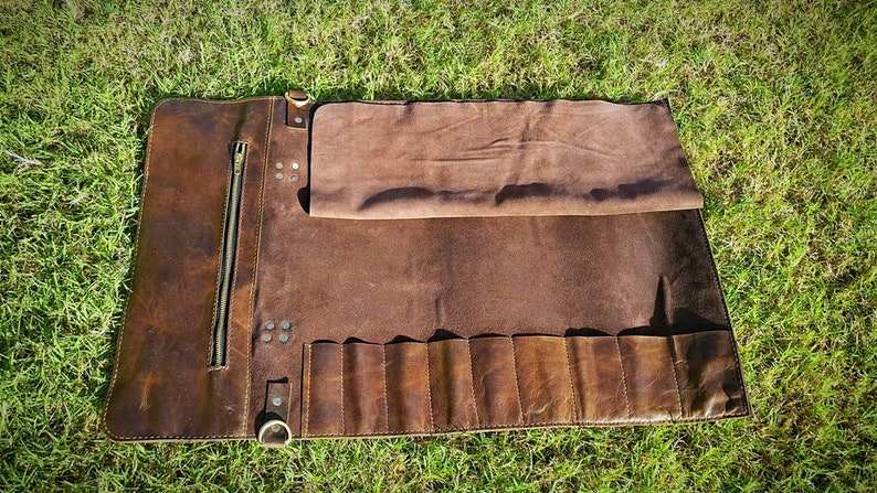 Étui à couteaux en cuir véritable fait main, sac de chef, organiseur professionnel pour outils de cuisine, étui de voyage anti-odeur, étui décontracté