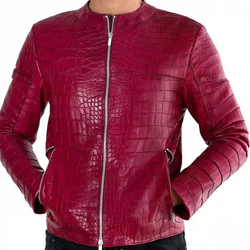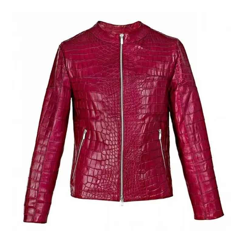 Blouson de motard en cuir fait main pour homme, col montant, style décontracté, fermeture éclair, service OEM, luxe, haute qualité, devant uni