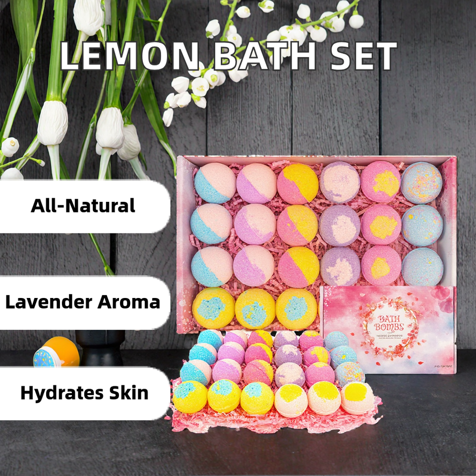 Coffret cadeau de bombes de bain parfumées au citron faites à la main, hydratantes et anti-stress, bain moussant sec avec de la lavande pour femmes