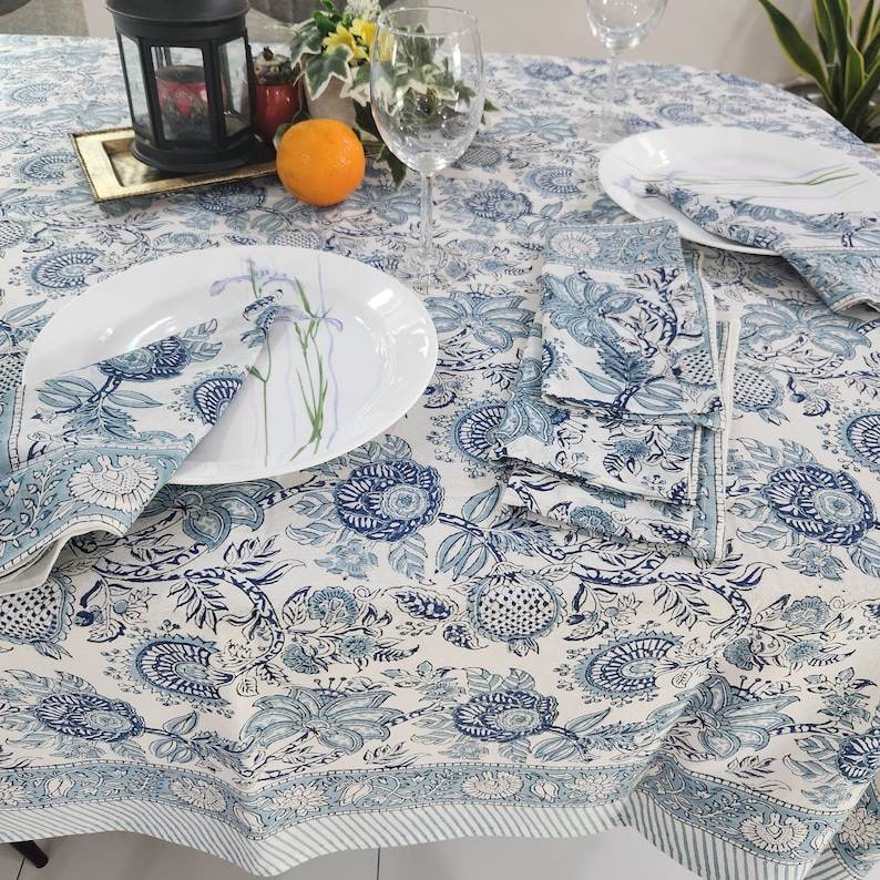 Nappe de table carrée en coton imprimé floral, lavable, de luxe, de haute qualité, bleu clair, faite à la main, parfaite pour la décoration de table à manger