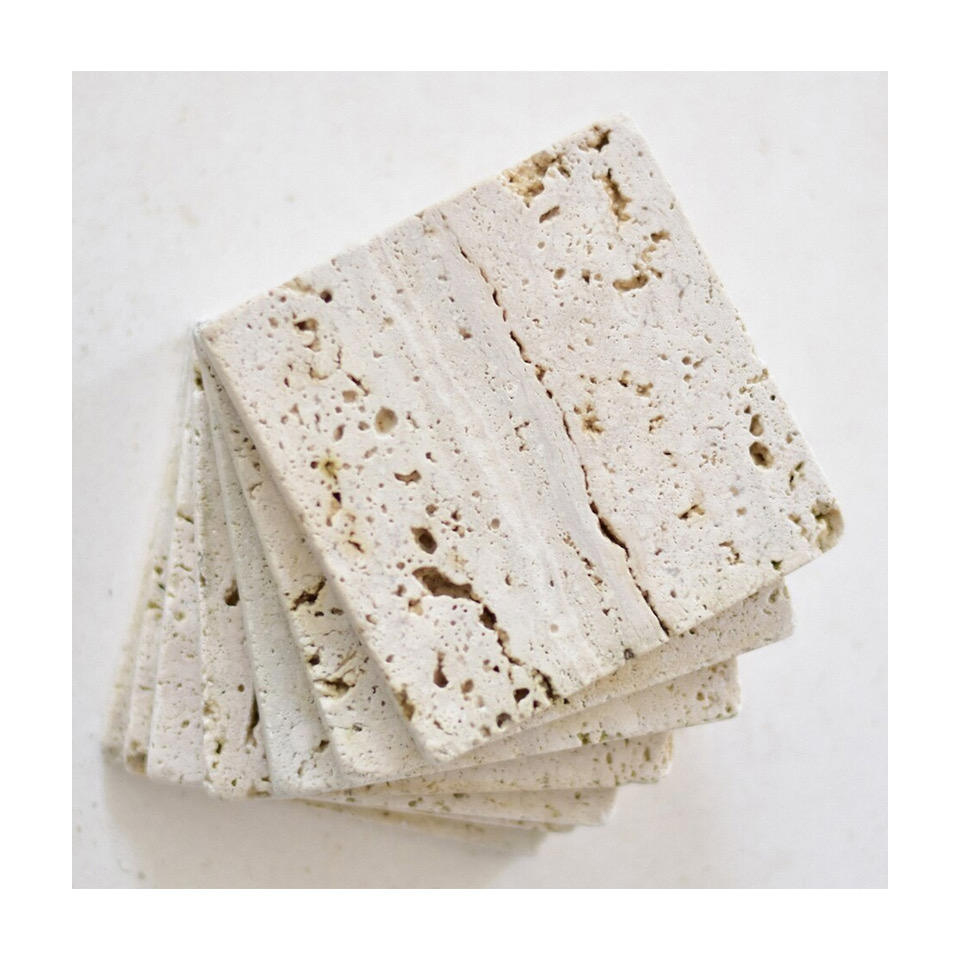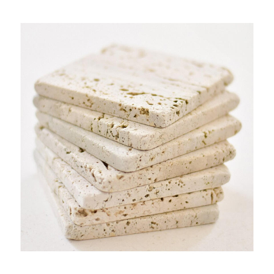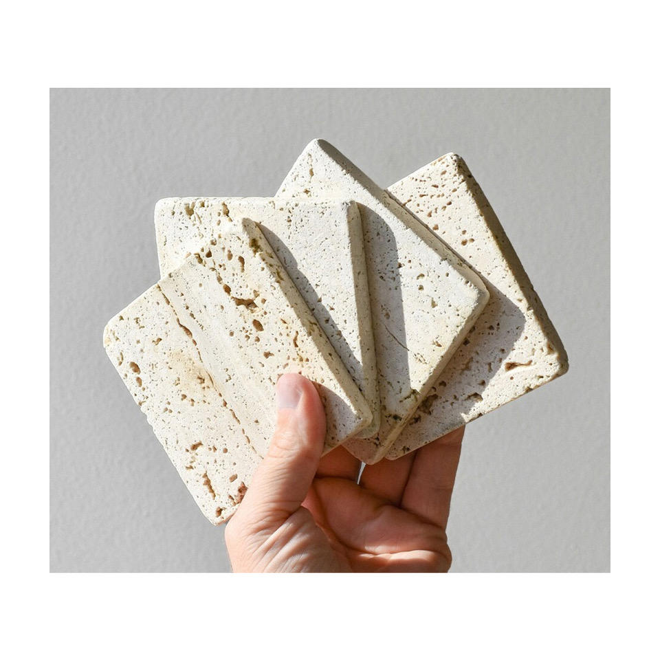 Ensemble de sous-verres en travertin de couleur claire fait à la main forme carrée classique offre une protection de table pour le thé, le café et les tapis et tampons