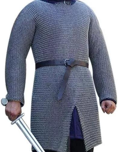 Chemise en cotte de mailles légère en aluminium faite à la main à manches longues armure médiévale anneau boutonné Haubergeon reconstitutions Cosplay