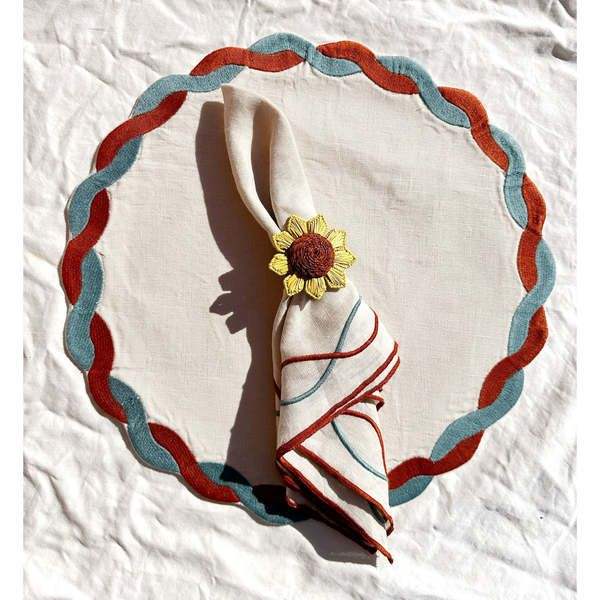 Sets de table en lin faits à la main, broderie détaillée, personnalisable, carton pour décoration de salle à manger classique, finition textile haut de gamme