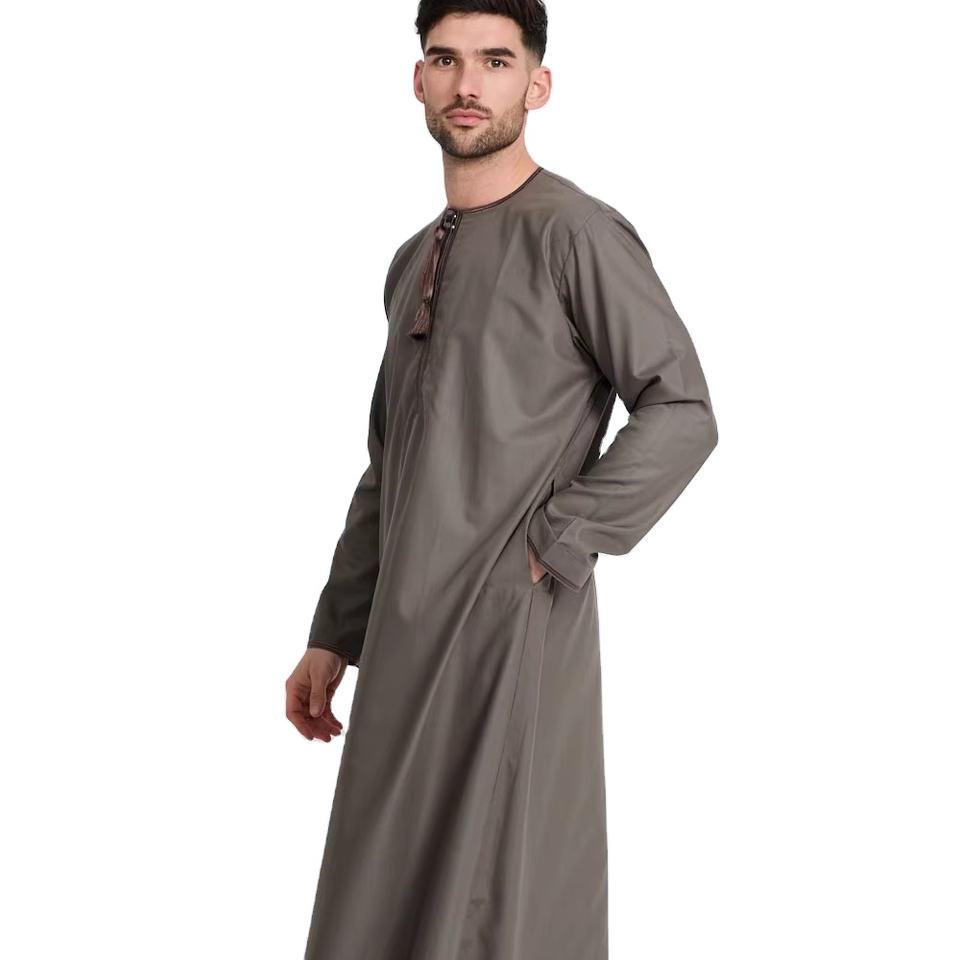 Thobe en lin fait main pour toutes les saisons respirant élégant manches longues ourlet droit solide ethnique pour quotidien Ramadan Eid