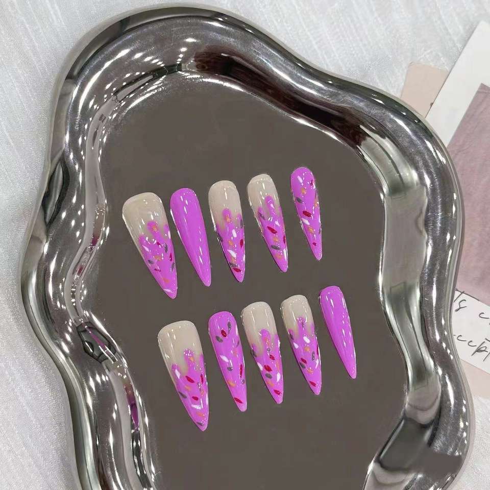 Ongles press-on longs et pointus faits à la main, rose translucide effet gelée ombré, art fumé cyberpunk, style Y2K