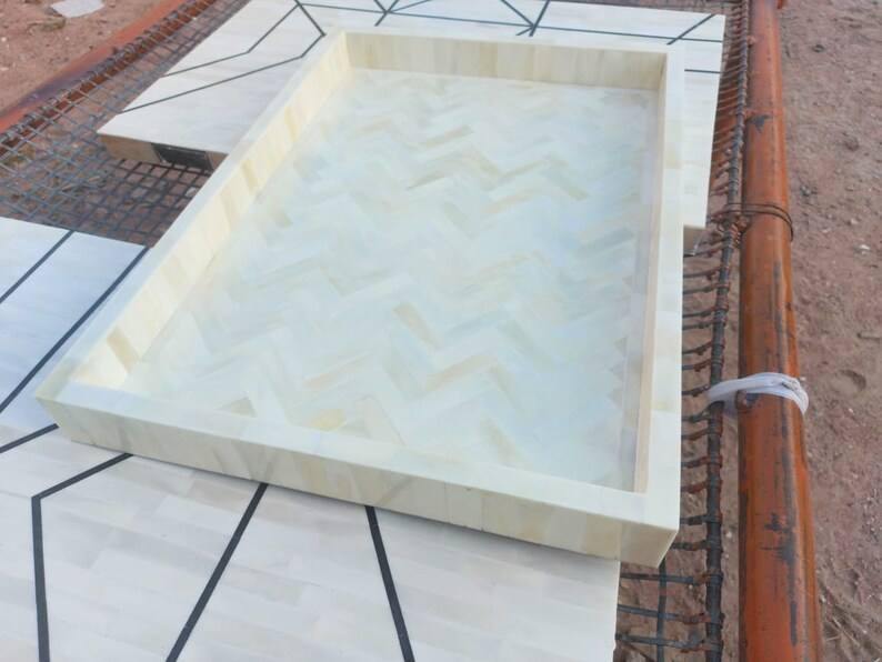 Plateau en os incrusté fait main de luxe pour le service, la table basse, la salle à manger, la décoration de la maison, les cadeaux, écologique, qualité supérieure