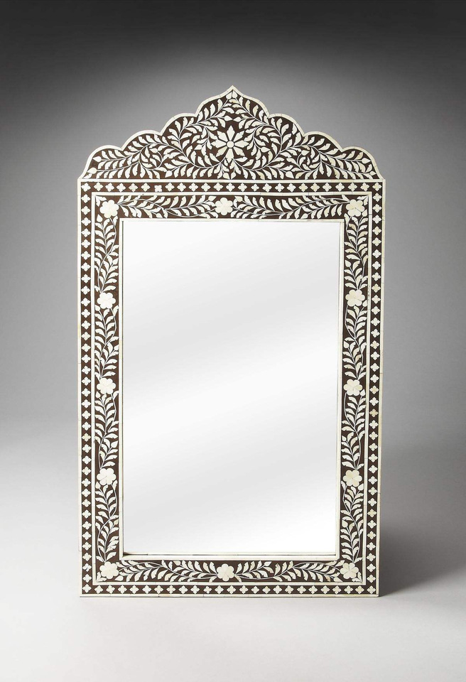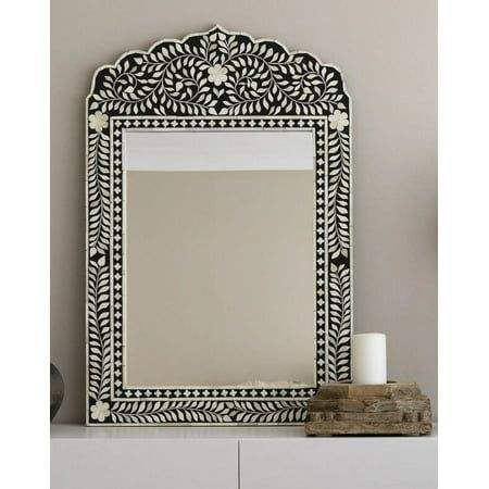 Miroir de courtoisie rectangulaire/rond artisanal de luxe, élégant, avec incrustations florales en os, respectueux de l'environnement