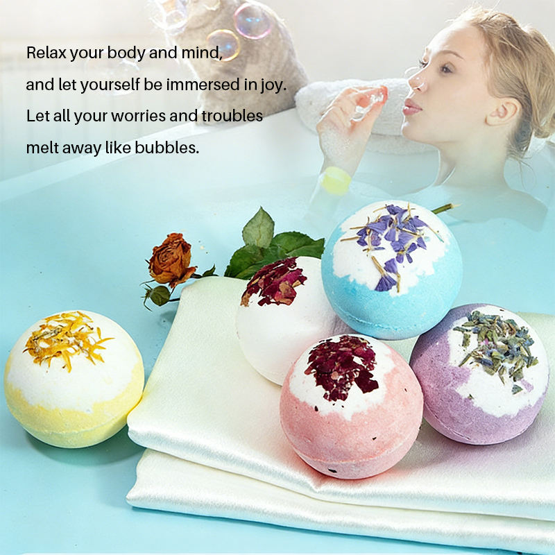 Bombes de bain relaxantes et anti-stress faites à la main, aux cristaux naturels de luxe, aux fleurs séchées, pour bain moussant et douche, 100g