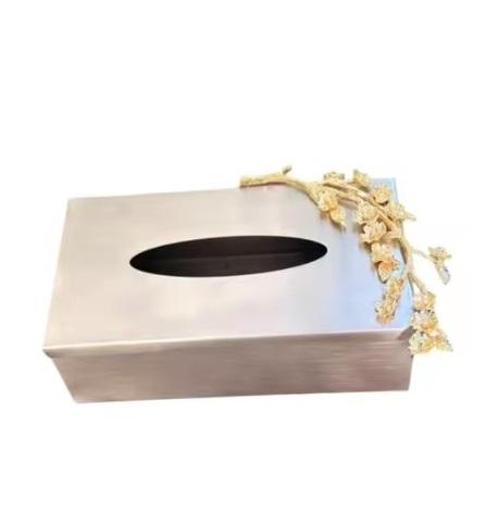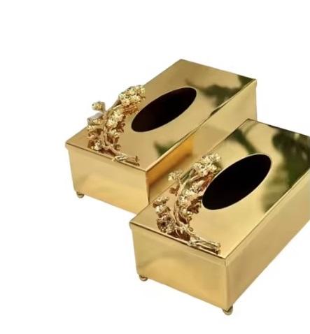 Boîte à mouchoirs en forme de rectangle de luxe faite à la main fleur attachée en métal avec support fini or Logo personnalisable pour revendeur