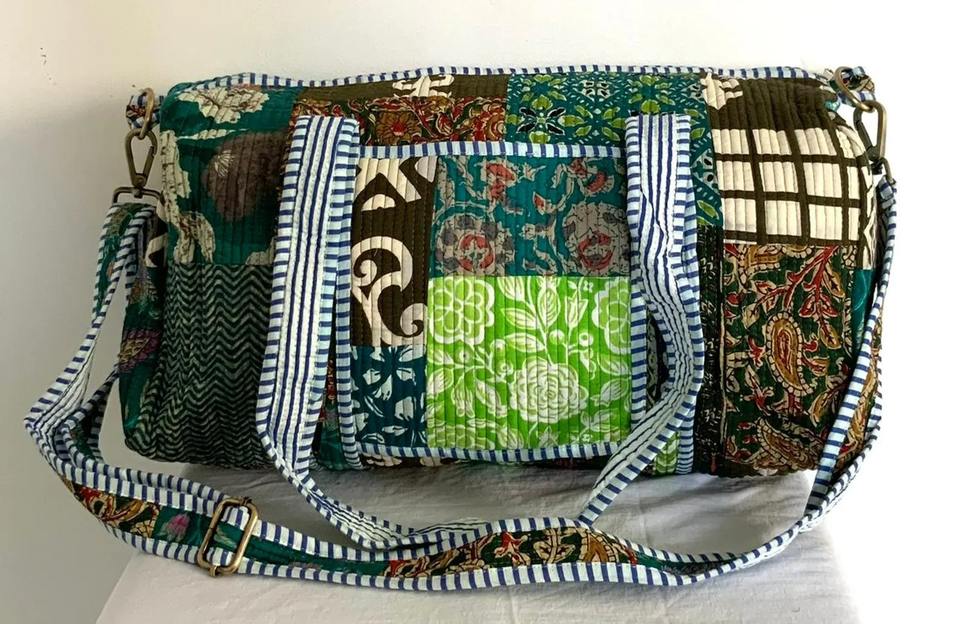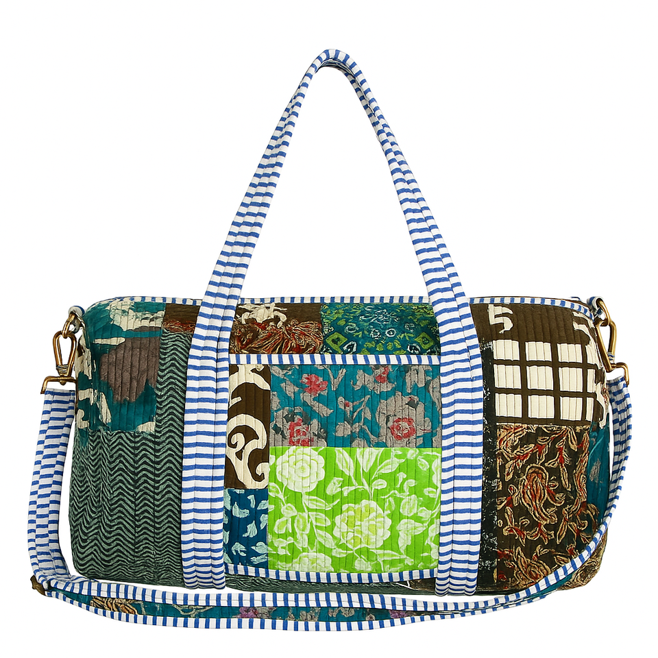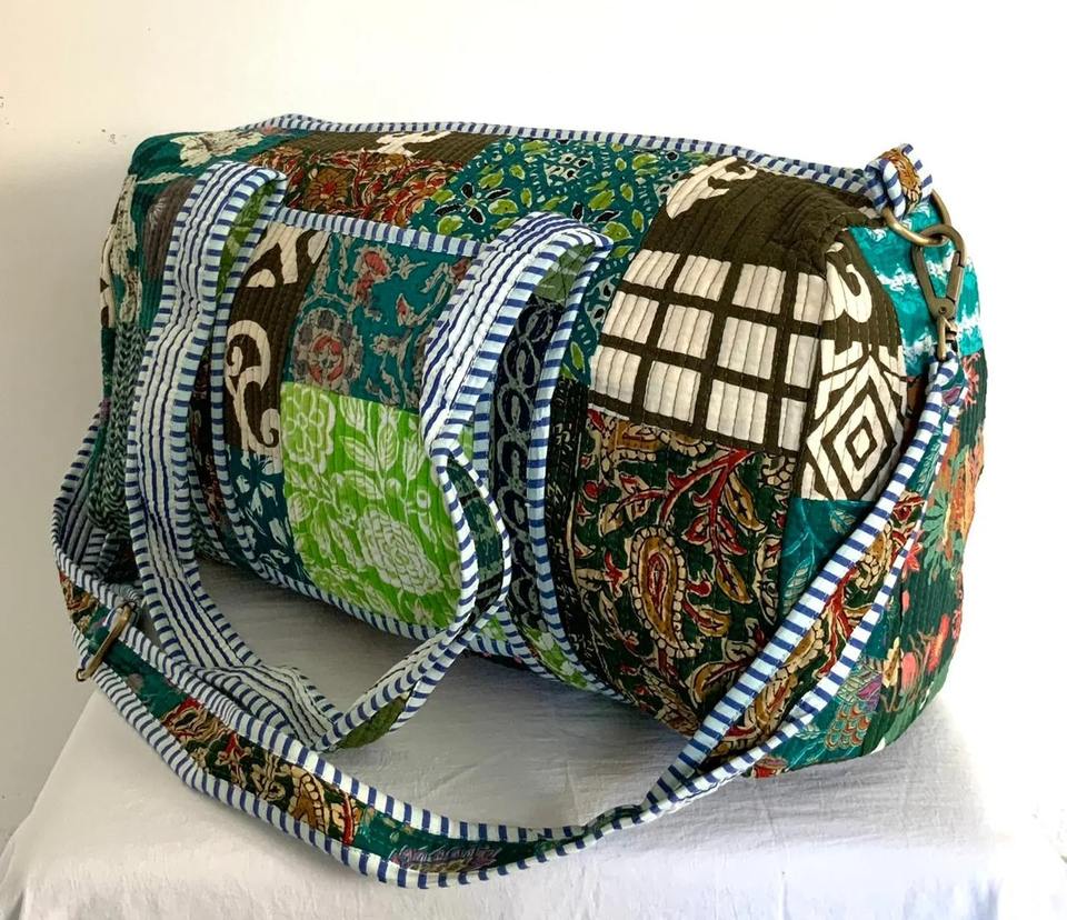 Sac de voyage week-end de luxe fait main, vert matelassé, grande capacité, durable, en coton, sac de sport