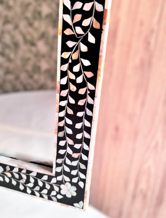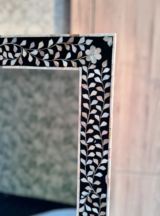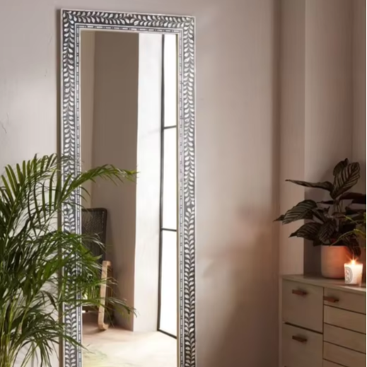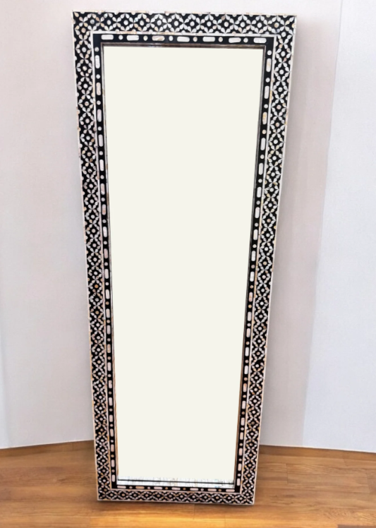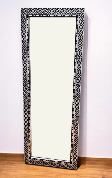 Miroir pleine longueur en contreplaqué MDF fait à la main avec cadre décoratif rectangulaire en incrustation de nacre et collage de chipset de qualité supérieure