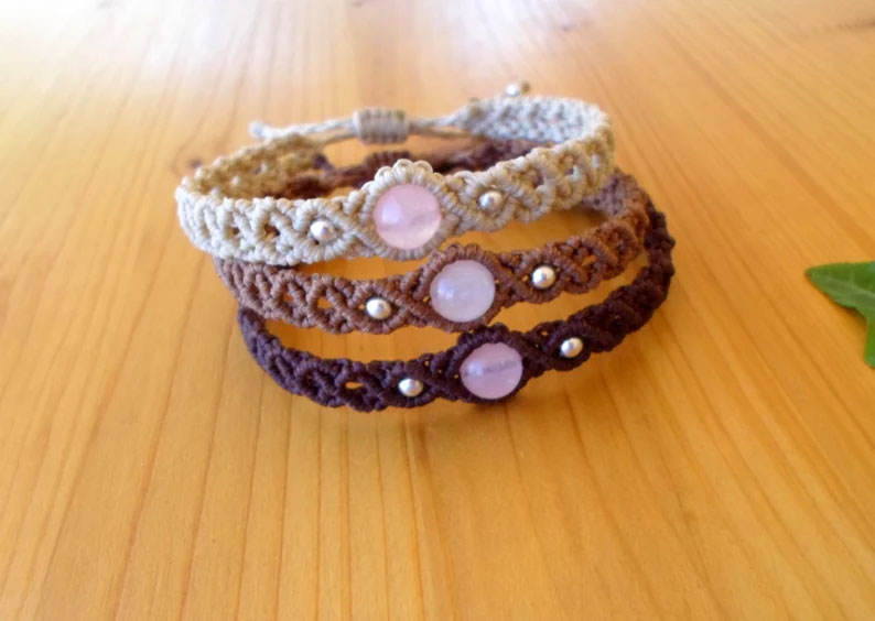 Bracelets en macramé faits à la main, pendentif turquoise, réglables, bijoux en pierre naturelle, cadeau vintage, style bohème