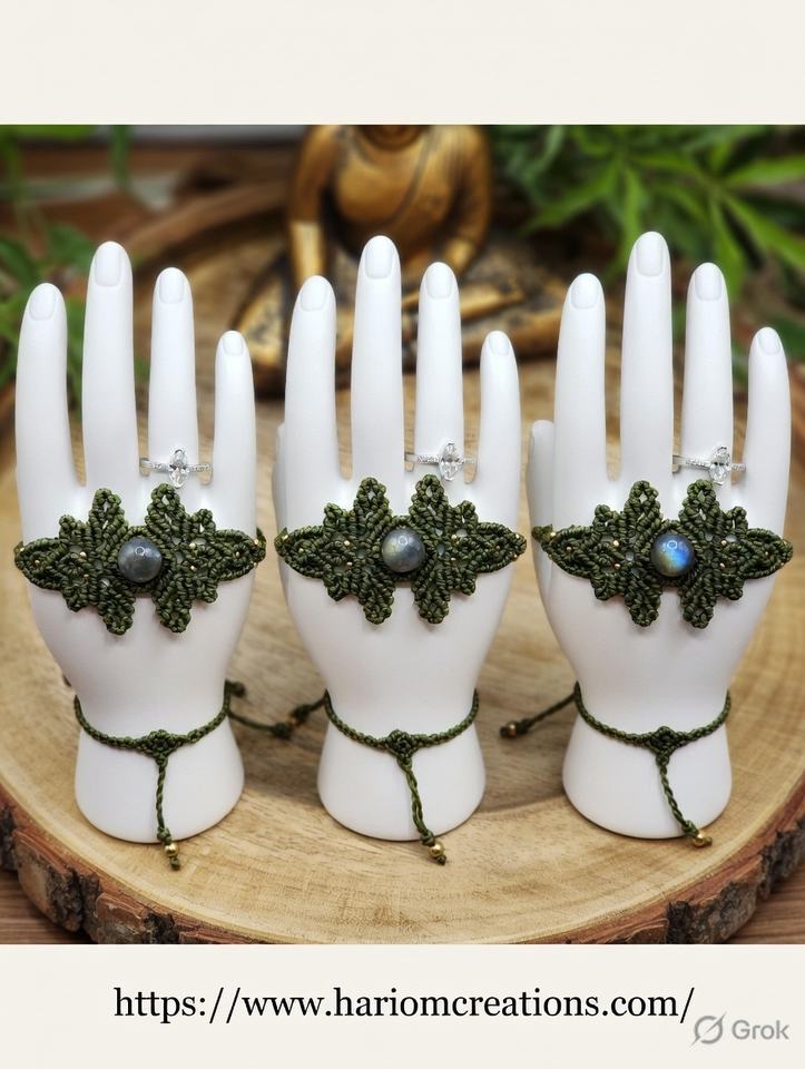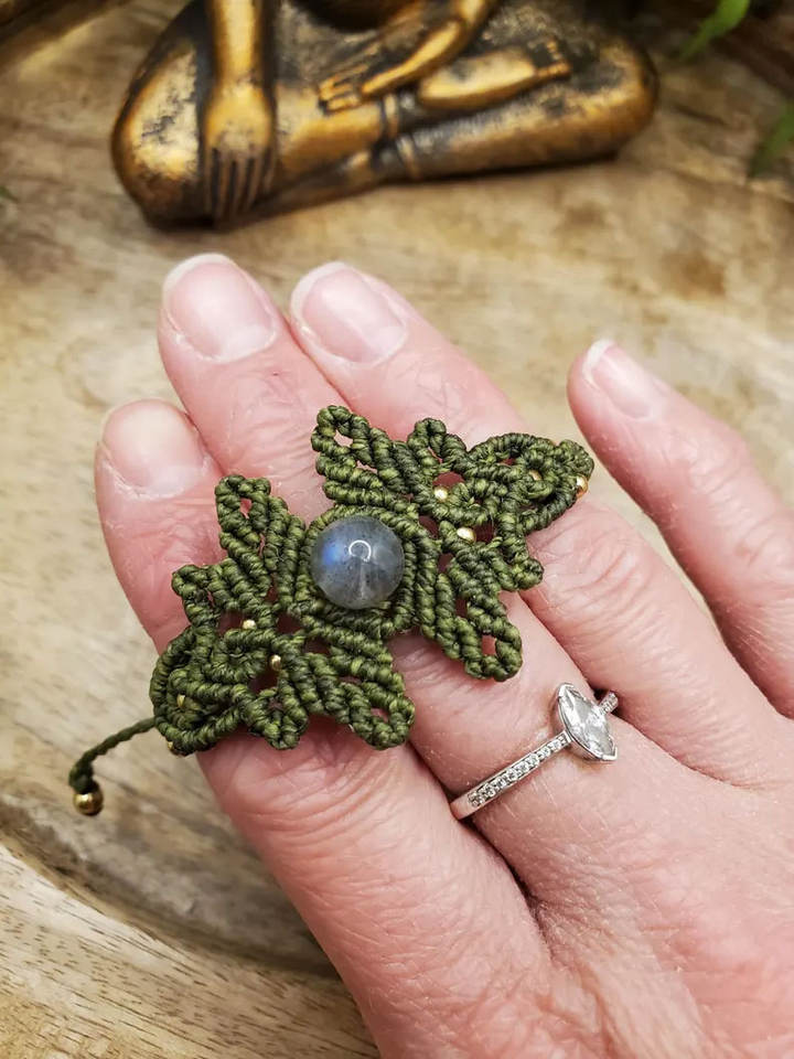 Bracelet en macramé fait main avec pierre précieuse labradorite, style bohème, réglable, bijou de guérison