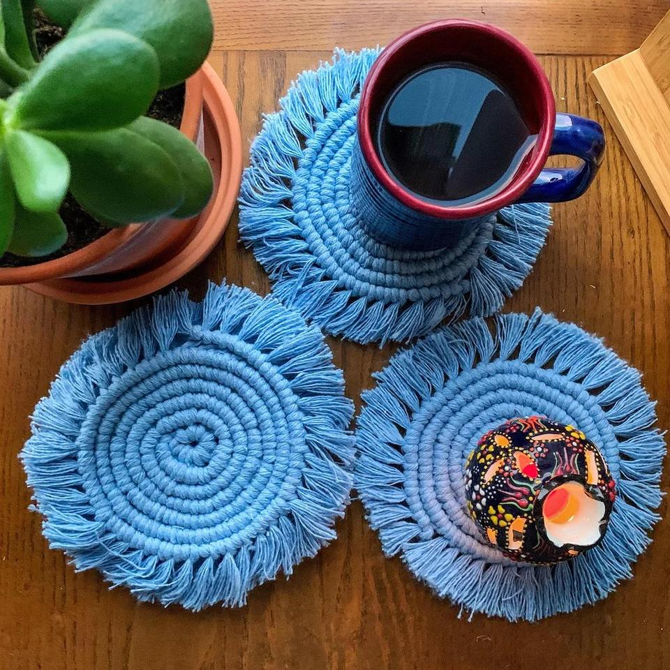 Sous-verre en macramé fait à la main en coton utilisé pour l'intérieur, l'extérieur, le salon et la décoration intérieure avec 100% coton au prix de gros