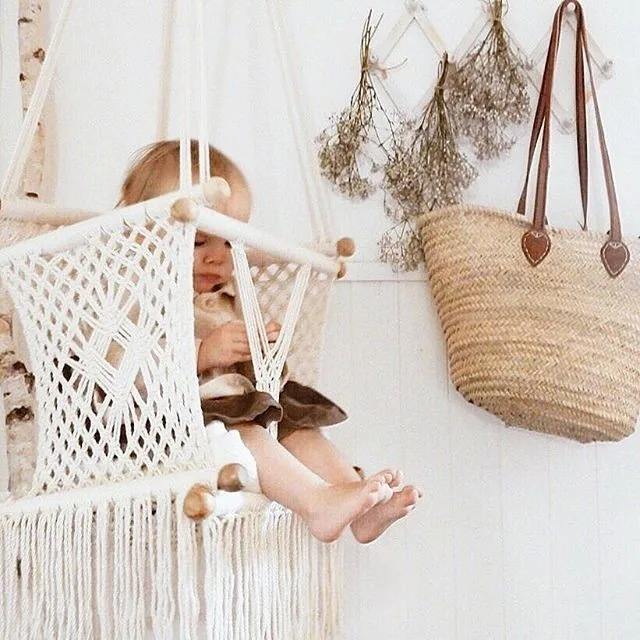 Handmade Macrame Kids Swing Chair Boho Hanging Seat Indoor Outdoor Fun Comfortable Durable Playroom Patio Decor