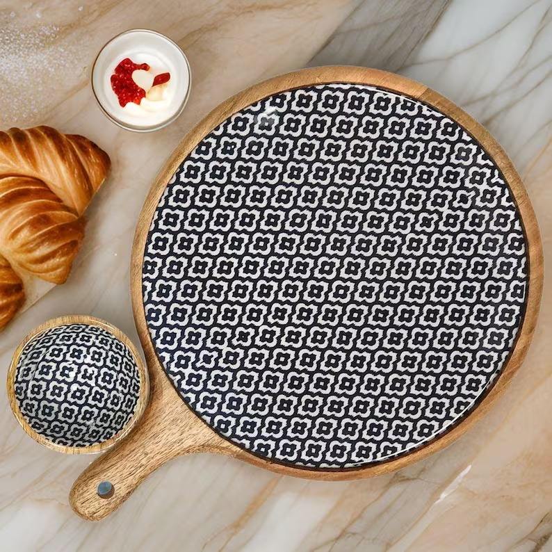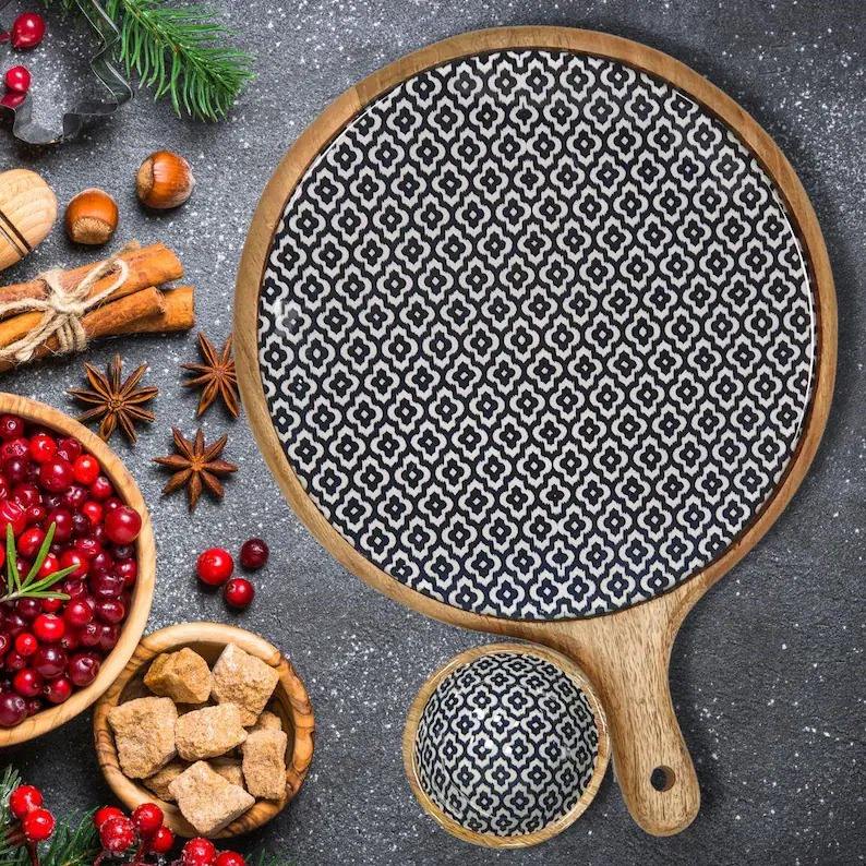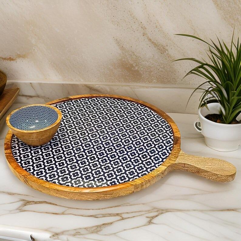 Coupe-pizza artisanal en bois de manguier, poignée confortable, plateau de service et planche à découper, logo personnalisé