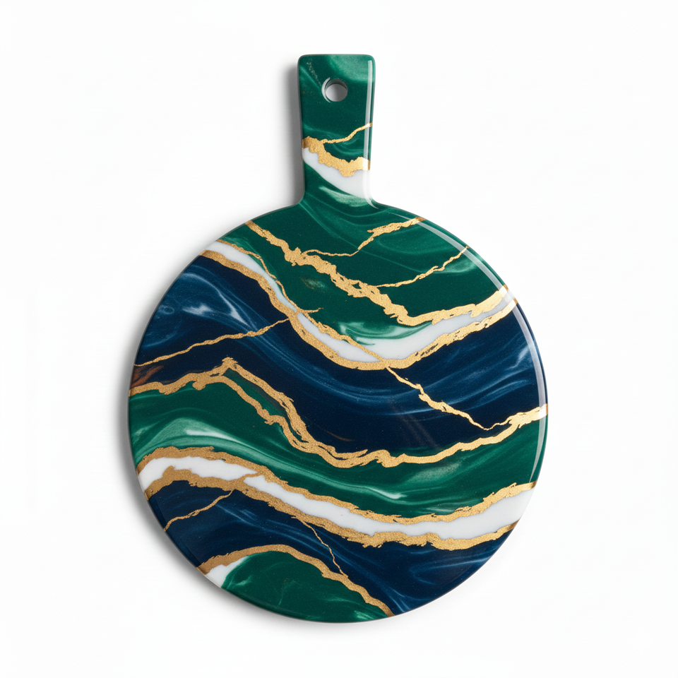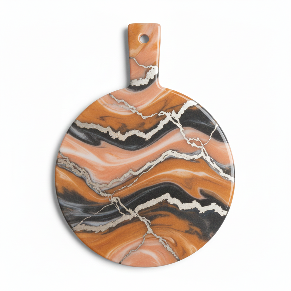 Planche à découper ronde en résine de marbre faite à la main, de haute qualité, durable, écologique, planche à découper, cuisine, plateau à fromage, maison