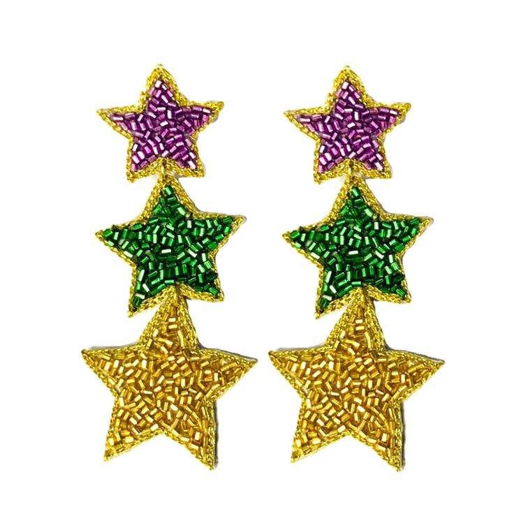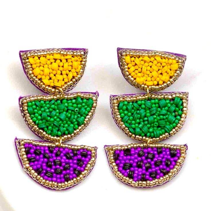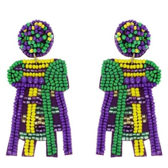 Boucles d'oreilles brodées de perles de rocaille de style Mardi Gras faites à la main pour les filles