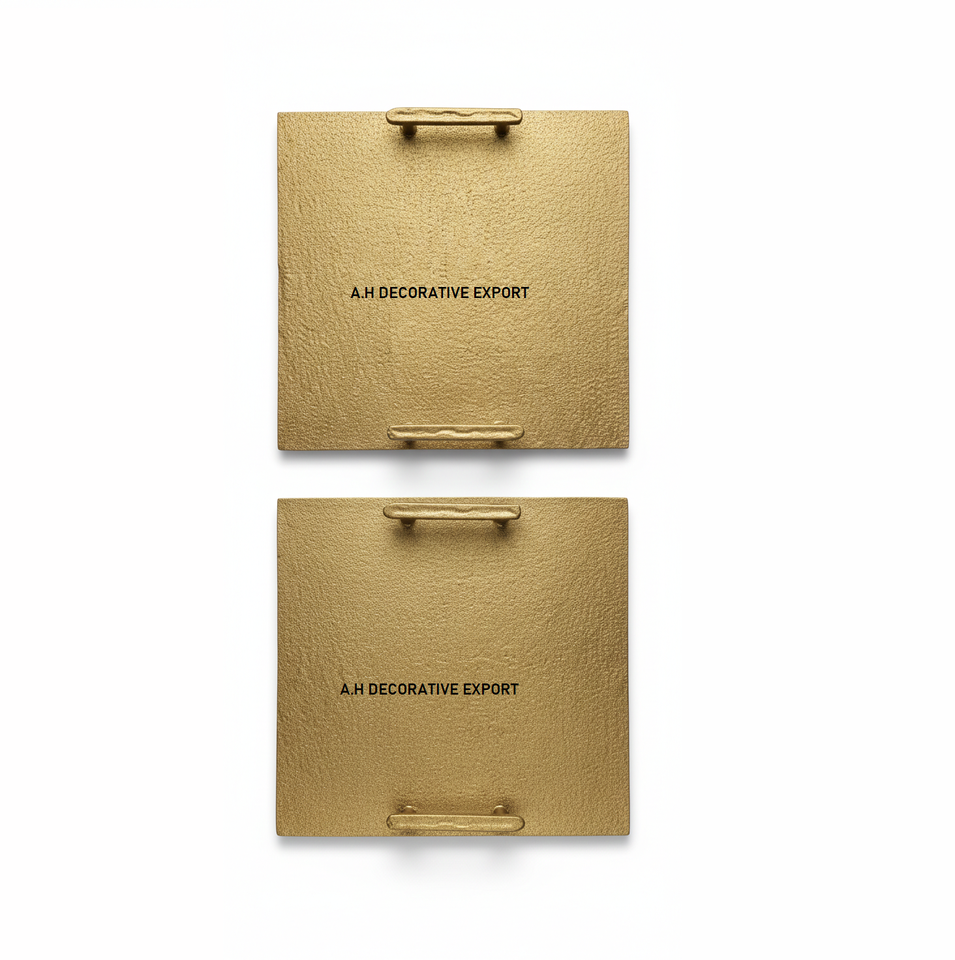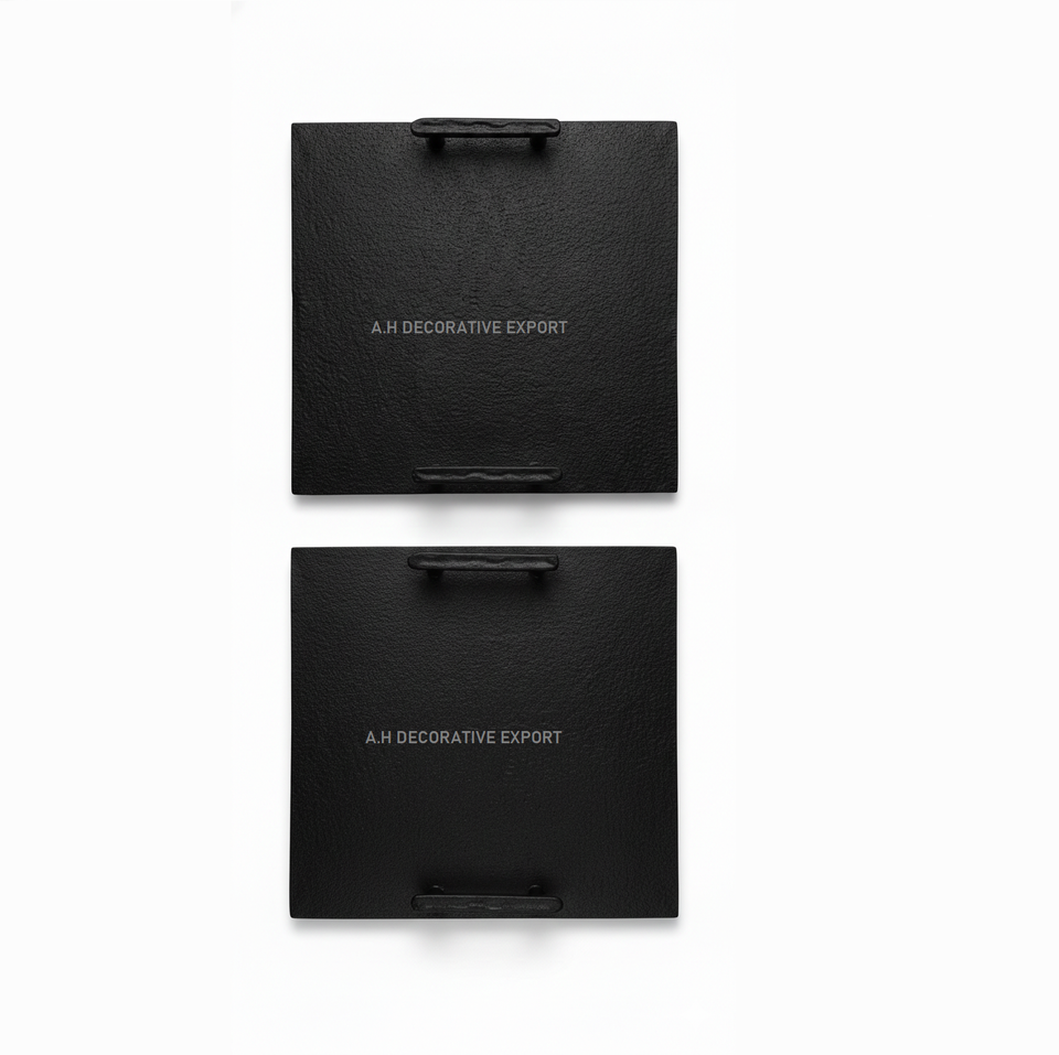 Plateau de service carré texturé noir mat fait main | Poignées de plat en métal industrielles modernes et minimalistes avec revêtement en poudre pour la maison