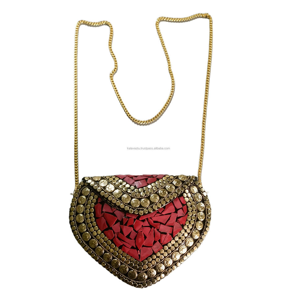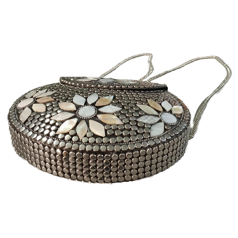 Sac à main antique en pierre Meenakari fait à la main, pochette en métal, sac bandoulière