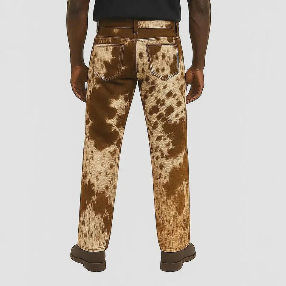 Pantalon en cuir véritable de vache à poils, fait main, pour homme, style western de luxe