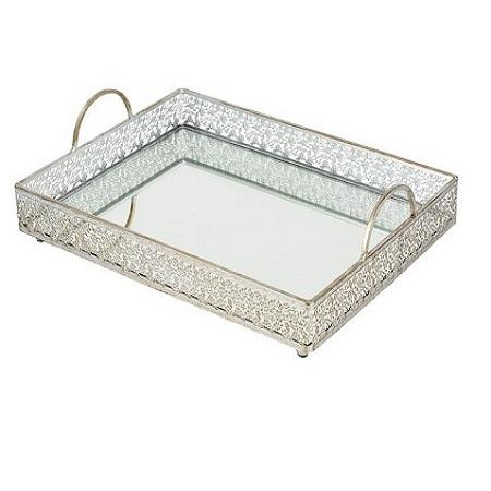 Handmade Metal And Mirror Serving Tray Greatest Quality Round Shape Food Serving Tray At Cheapest Pricing