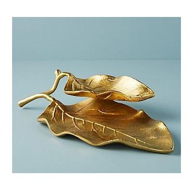 Plateau de bonbons décoratif en forme de feuille en métal coulé fait à la main