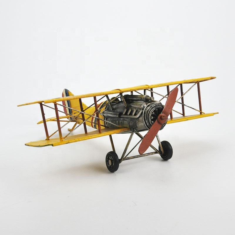 Jouet d'avion en métal fait à la main pour enfant, biplan rétro, hélice, modèle d'avion à aile fixe, décoration créative pour la maison, cadeau pour enfant