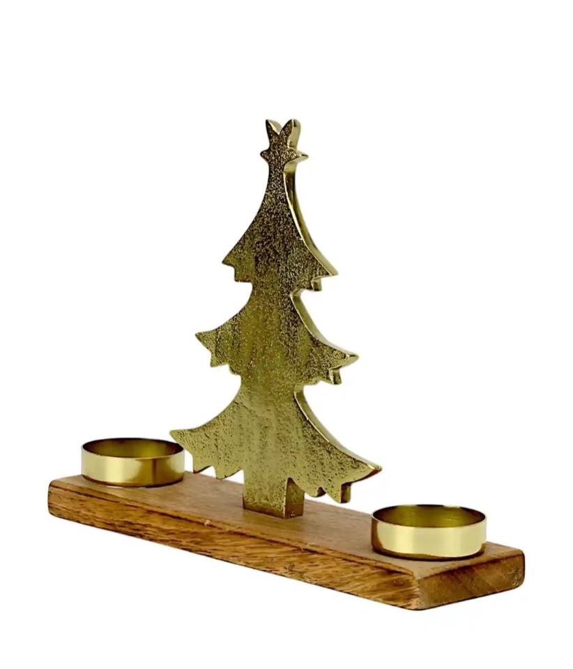 Porte-bougie de Noël en métal fait à la main, décoration de table, sculpture, base en bois, au meilleur prix par l'exportateur