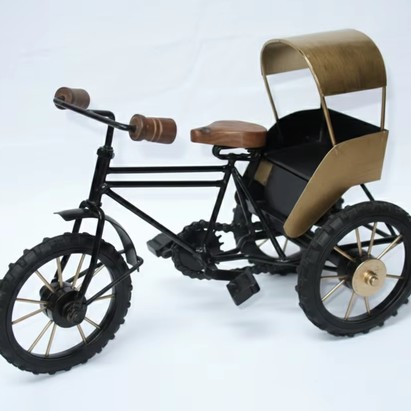 Modèle miniature de rickshaw moto vintage en métal artisanal, art en fer antique, décoration d'intérieur, ornement de bureau, cadeau de collection